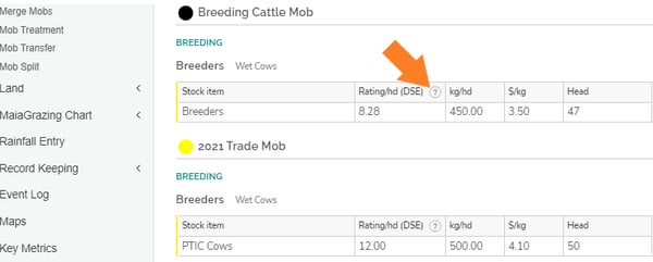 Daily feed demand is calculated by MaiaGrazing using ratings that you have assigned to each class of stock in each mob/herd.