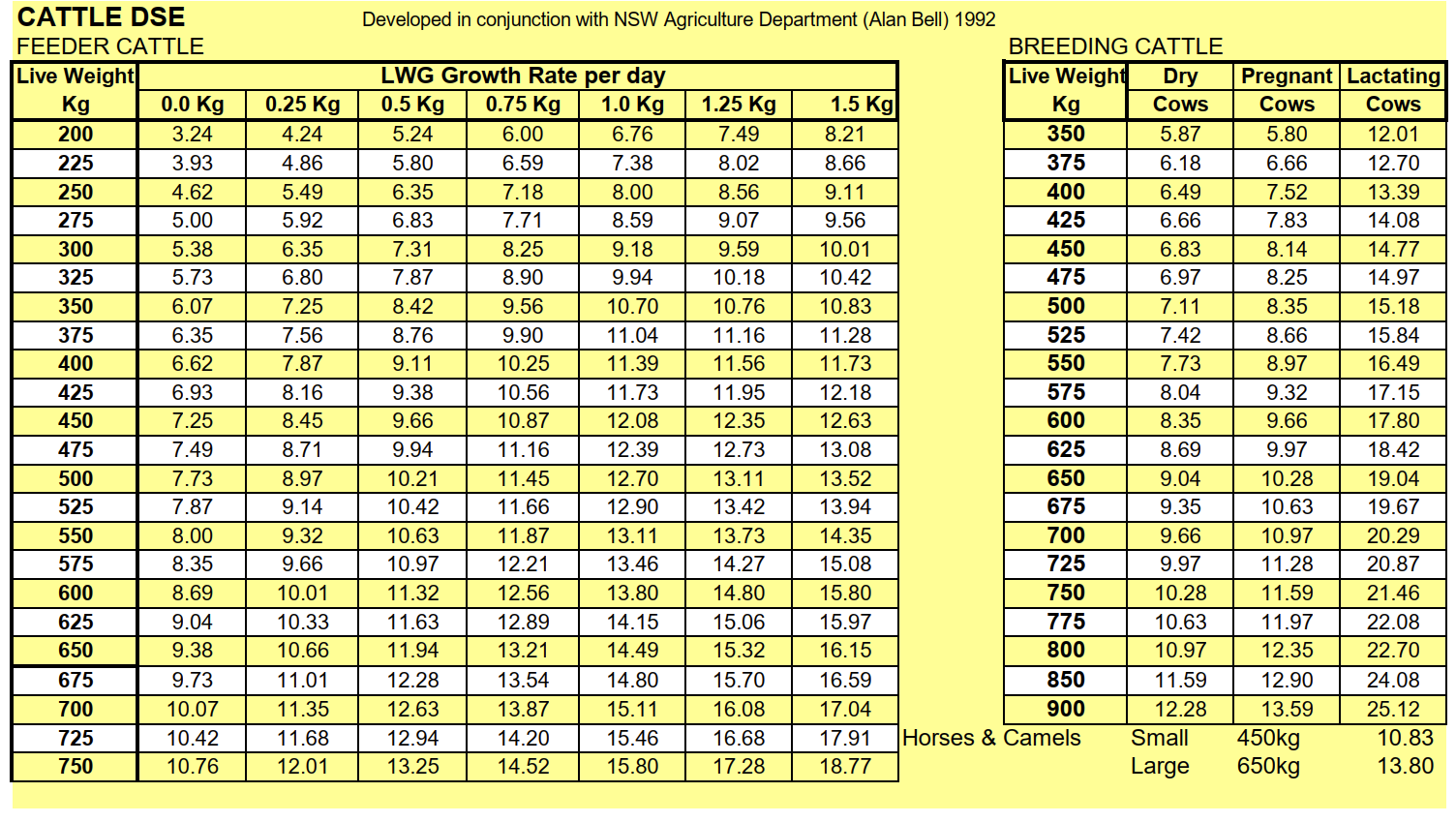 1 DSE can be approximated as equivalent to 1kg DM (dry matter) depending on feed quality, stock breed, growth rate and reproductive status.
