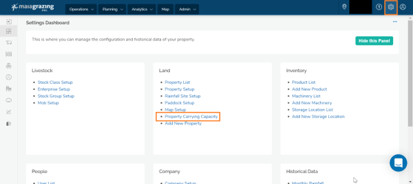 Type your calculated carrying capacity in the box at the top left of the screen underneath 'Property Carrying Capacity'