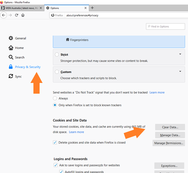 Click on 'Privacy and Security' from the left hand menu.