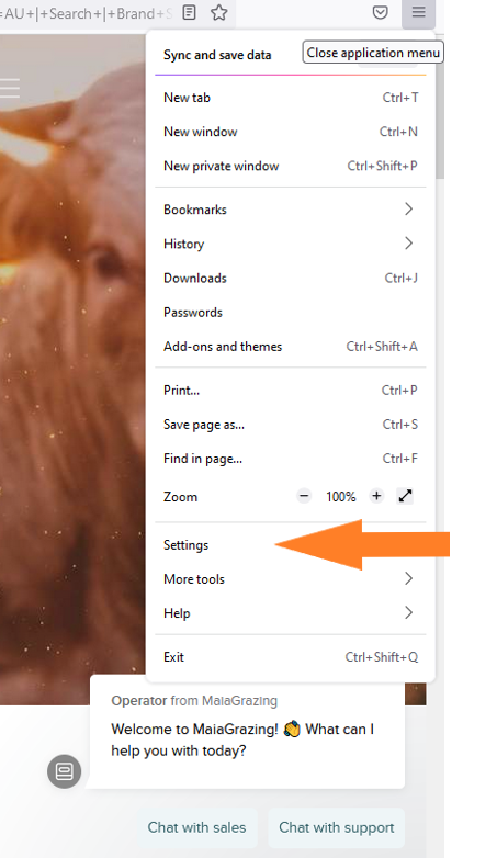 Click on the word 'settings' from the menu.
