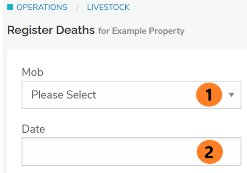 (3 dots)' far right of the screen of the mob/herd you wish to record a death. - Select 'Death'