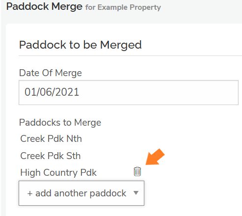 To remove a selected paddock/pasture click on the trash can (🗑️) beside the name of the paddock/pasture.