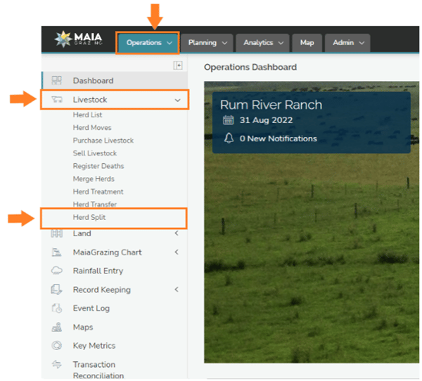 Splitting a mob/herd is how you tell MaiaGrazing that animals from one mob/herd have been split (drafted) off or removed from the original mob/herd and either combined with another mob/herd or created a new mob/herd.
