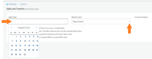 Click on the drop-down arrow for ‘Herd to Split’ select the mob/herd to split.