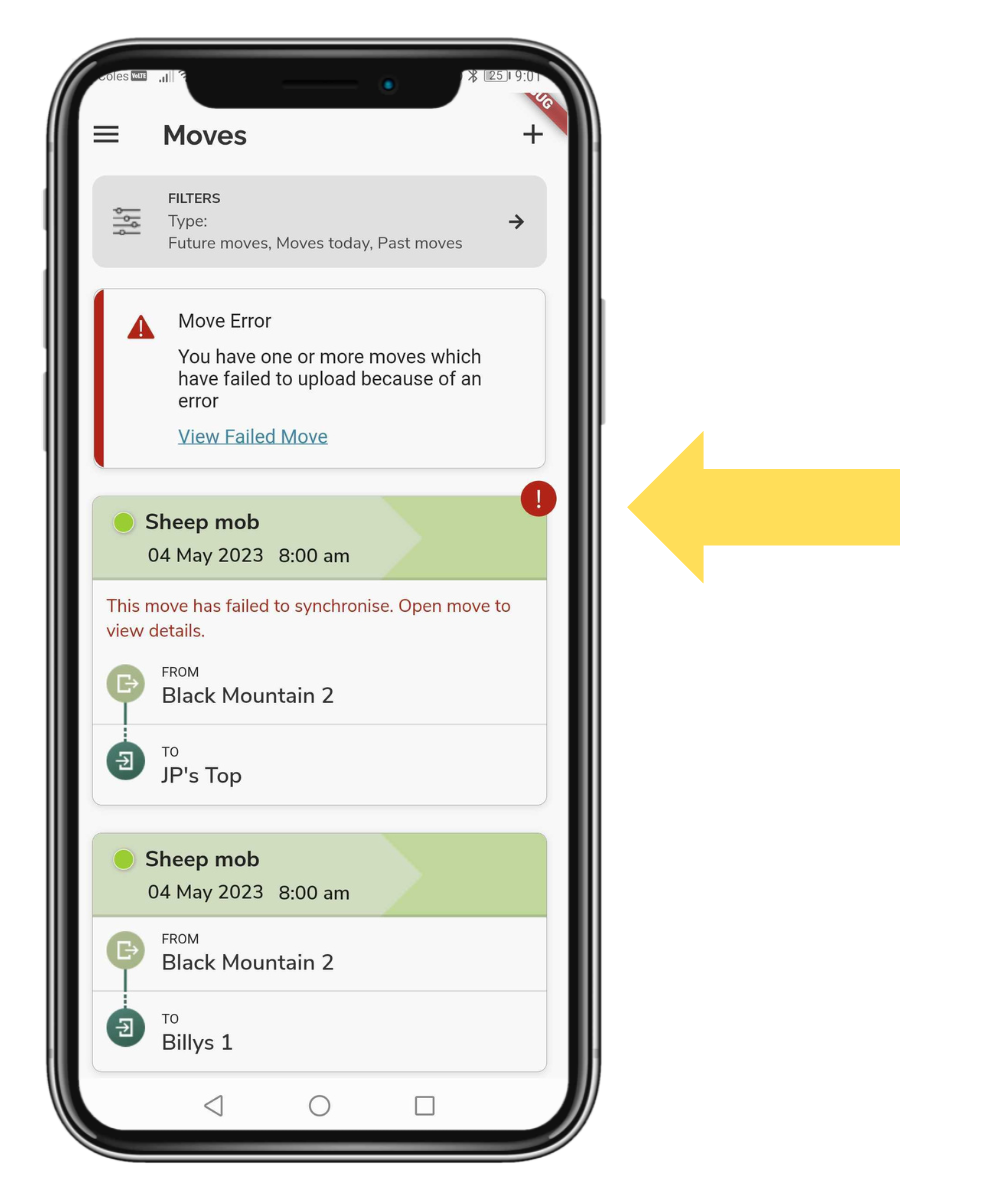 If you are finding that there is still a discrepancy between the paddocks that mobs are in on your phone compared to the desktop, you may have a move that is blocking some of the moves from uploading.