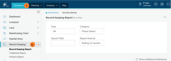Tick 'Show Additional Attributes' to show extra details (Product Name, Batch Number, Application Rate, WHP, ESI, Date Safe for Slaughter, Total Qty)