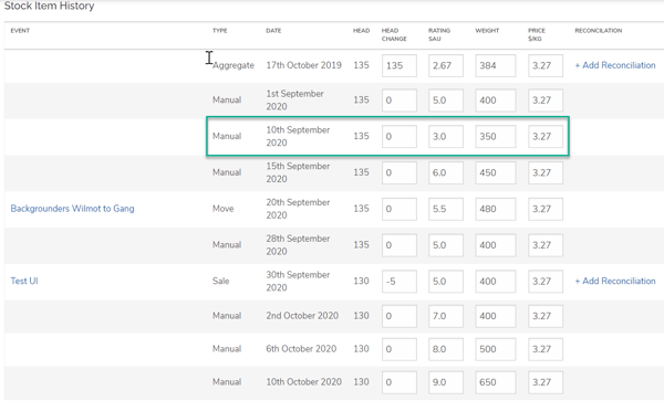 When a user goes back to 10th September to retrospectively change the Rating & weight for the above stock item, then the prompt will appear with the two options. If user chooses Option '2', there will not be any updates to other records to the stock item history.