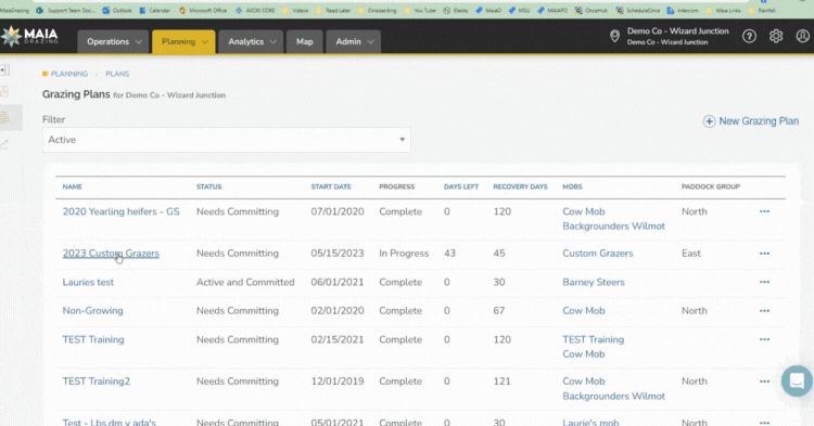 Click on the ‘Name’ of graze plan that needs to be edited.