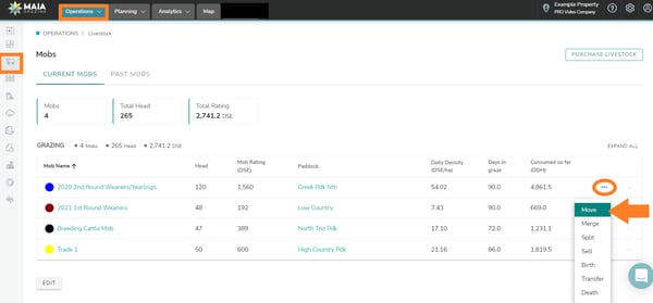 When you have multiple properties set up in MaiaGrazing, you can move stock from one property to another, known as a Property Transfer