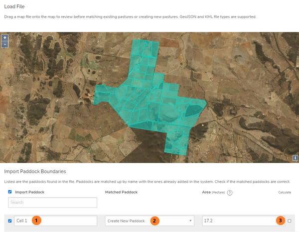Step 4: Match manually entered paddock names with imported paddock/pasture boundaries.