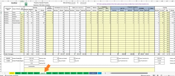 - Click on the relevant tabs at the base of the spreadsheet to access particular months.