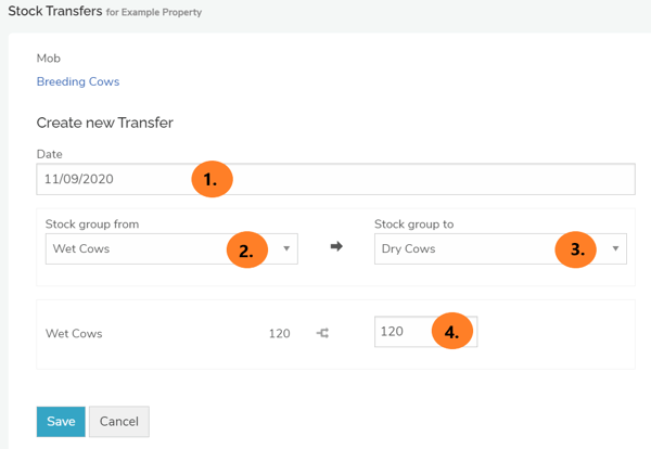 Select the dry cows from the 'Stock group to' drop-down (3)