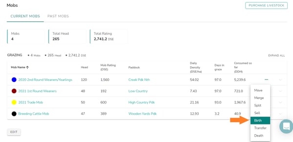 Process for entering natural increase into MaiaGrazing at time of weaning where mothers have been carrying the feed demand for both animals.