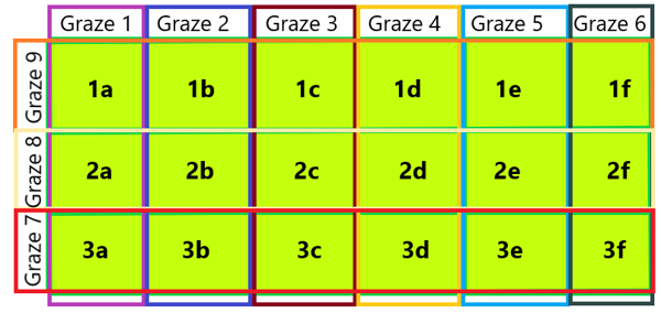 Graze 7: Open gates between 3a, 3b, 3c, 3d, 3e,3f