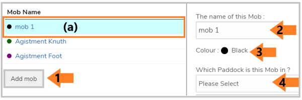 Click on the coloured dot underneath the herd/mob name to choose the colour that this herd/mob will be in map. (3)