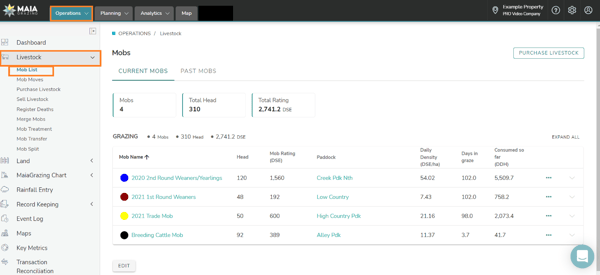 beside the name of my mob/herd. In this case it is "Breeding Cattle Mob".