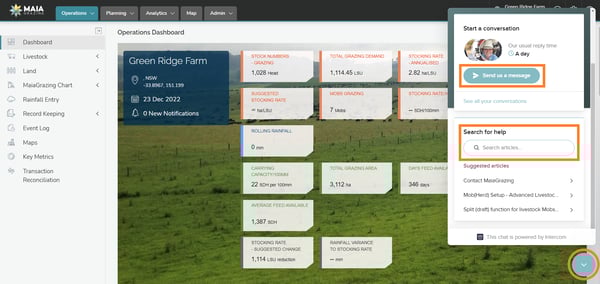 Please reach out to the MaiaGrazing Support team through Intercom by clicking 'Send us a message' if you have any questions or need assistance in entering your data. You can also search for other articles by entering key words and searching our HELP directory.